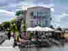 Die Autos bleiben wenige Schritte oberhalb des Hafendorfs auf dem schattigen Parkplatz stehen. Die durch die Terrassierung entstehenden Souterrains werden als Ladengeschäfte und Lager, Verleihstationen und Bistros, Galerien und Fahrradschuppen vermietet und genutzt.